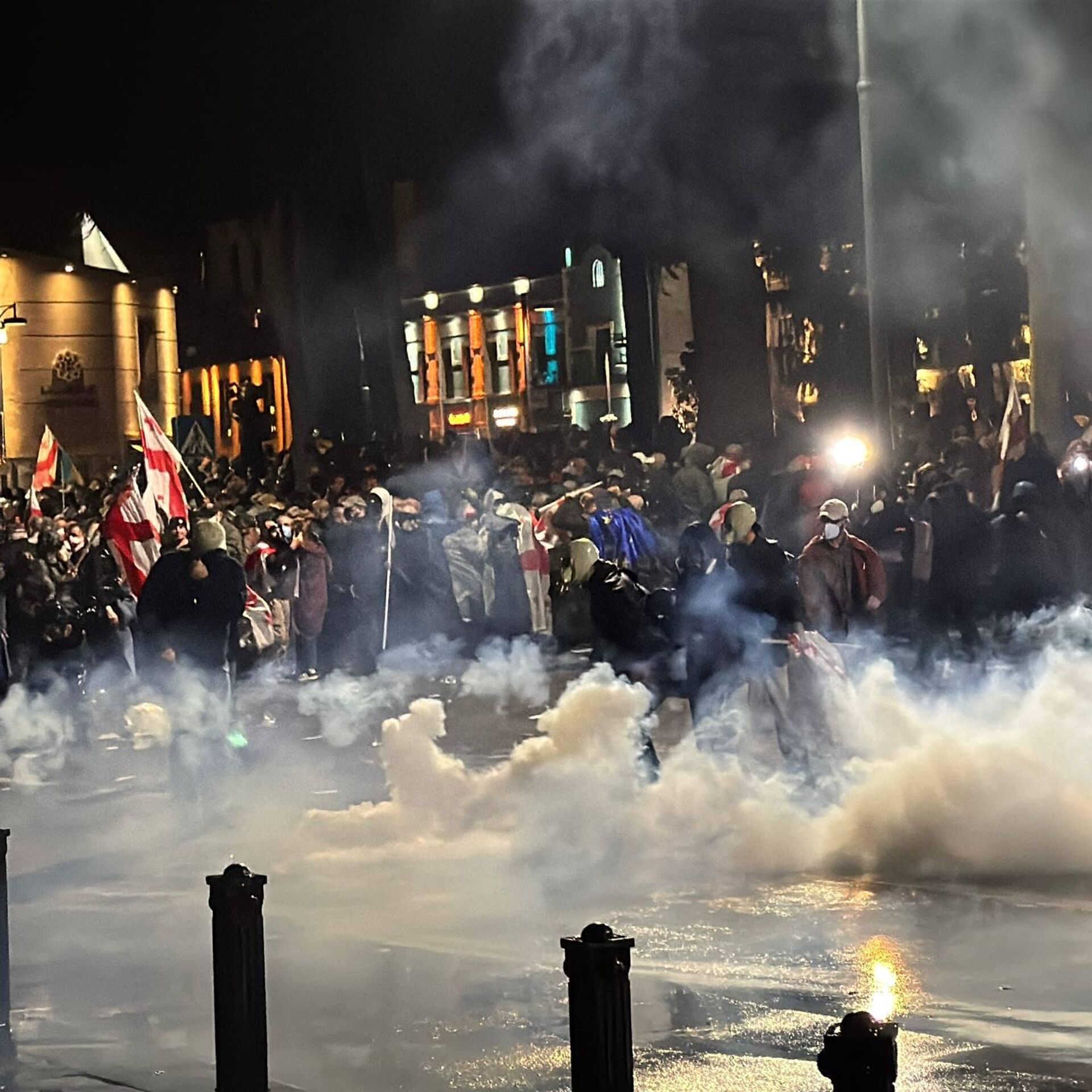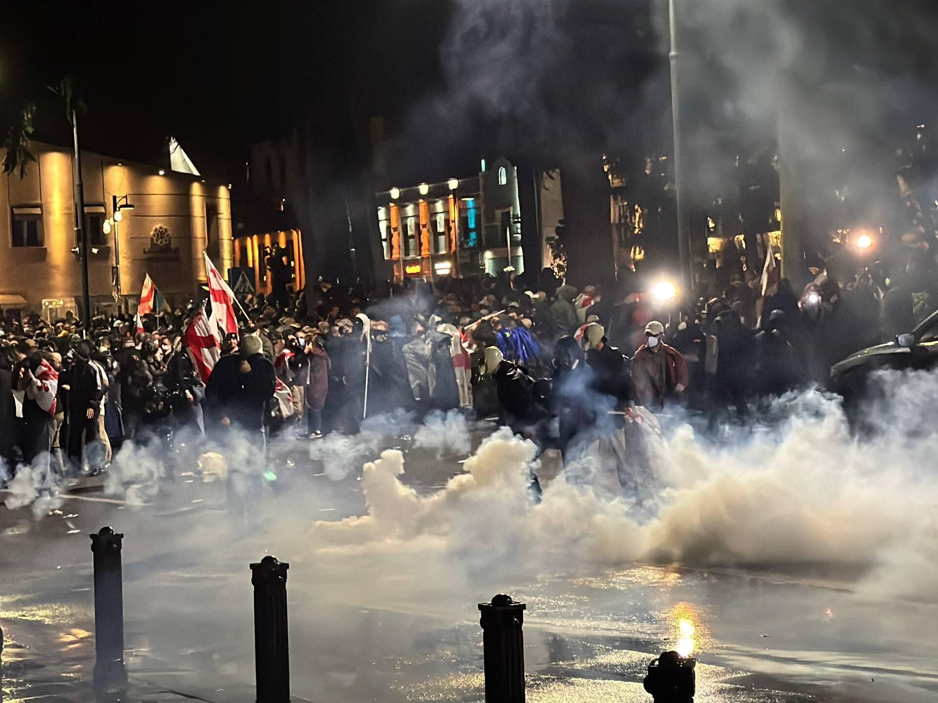 პოლიციამ ათონელზე შეკრებილი აქციის მონაწილეების წინააღმდეგ, რომლებმაც საქართველოს პრეზიდენტ მიხეილ ყაველაშვილის ადმინისტრაციის შენობაში შეჭრა სცადეს, წყლის ჭავლი და სხვა სპეციალური საშუალებები გამოიყენა.