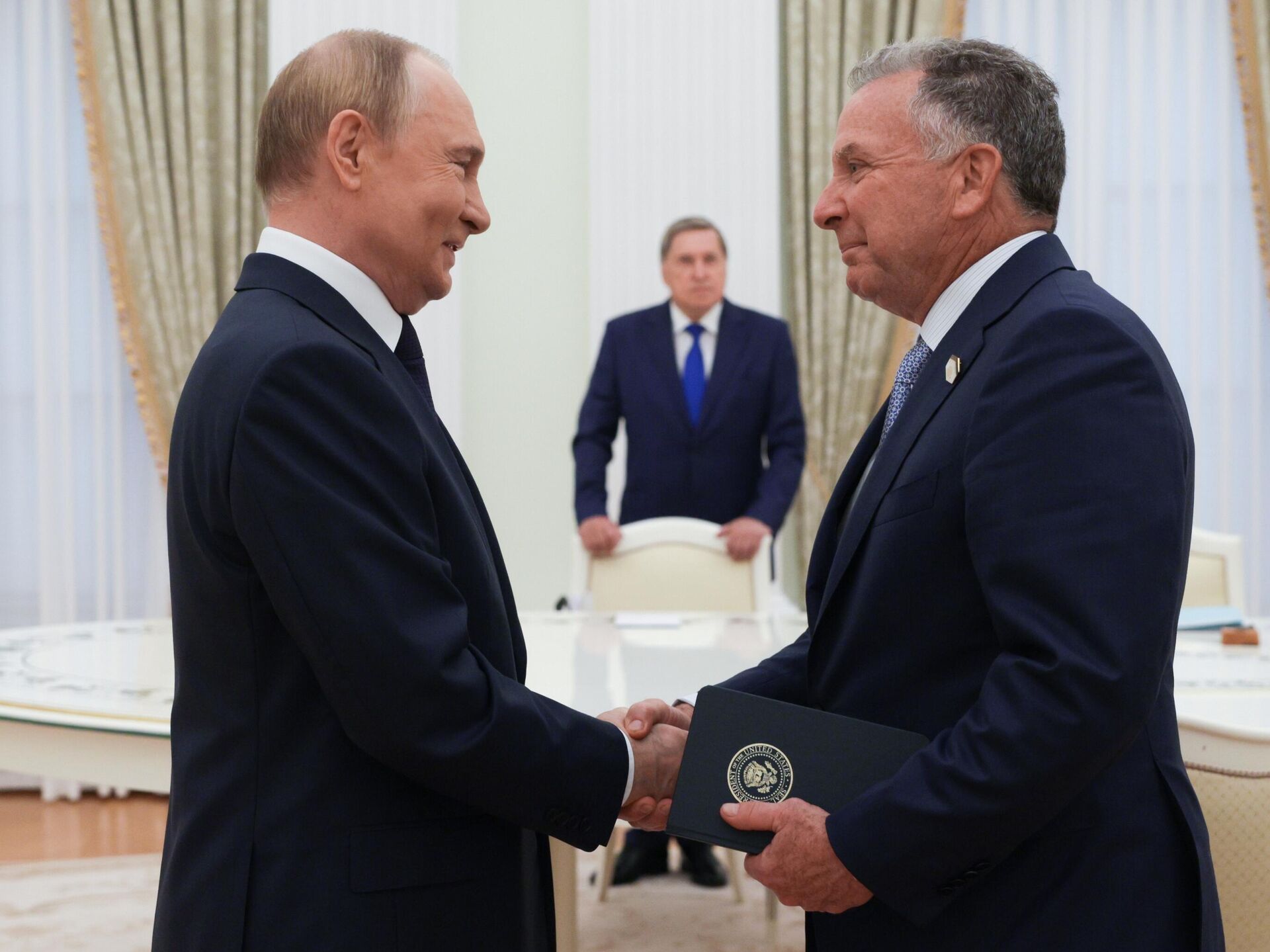 2025 წლის განმავლობაში აშშ-ის სპეცწარმომადგენელი რამდენჯერმე ეწვია რუსეთს და შეხვდა ქვეყნის პრეზიდენტს. უიტკოფსა და პუტინს შორის ბოლო შეხვედრა 6 აგვისტოს, კრემლში შედგა და დაახლოებით სამ საათს გაგრძელდა.