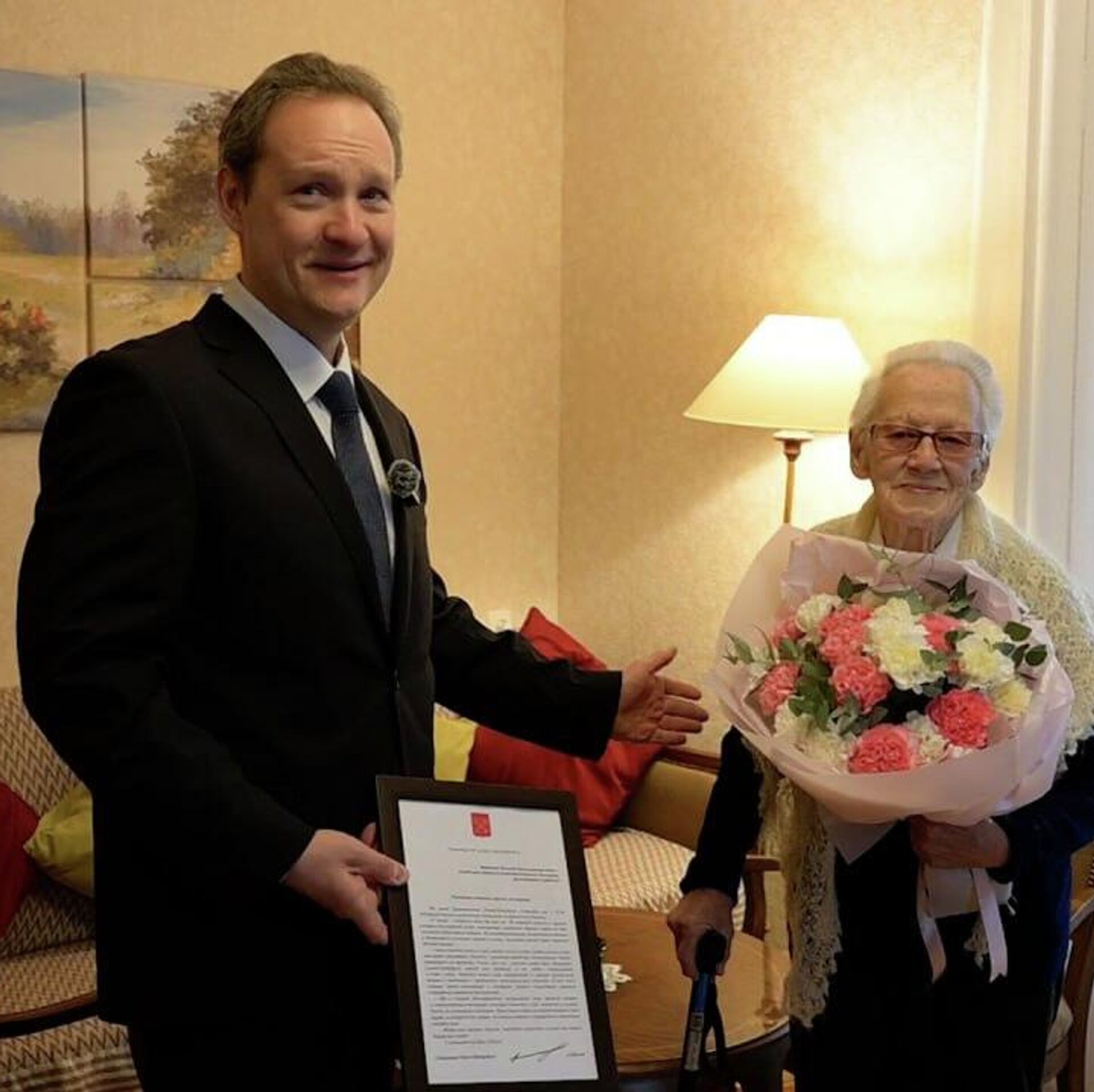 ვეტერანს ეს დღე მიულოცეს საქართველოში რუსეთის ფედერაციის ინტერესთა სექციის წარმომადგენლებმა, რომლებმაც მას სანკტ-პეტერბურგის გუბერნატორ ალექსანდრ ბეგლოვის ოფიციალური მილოცვა გადასცეს.