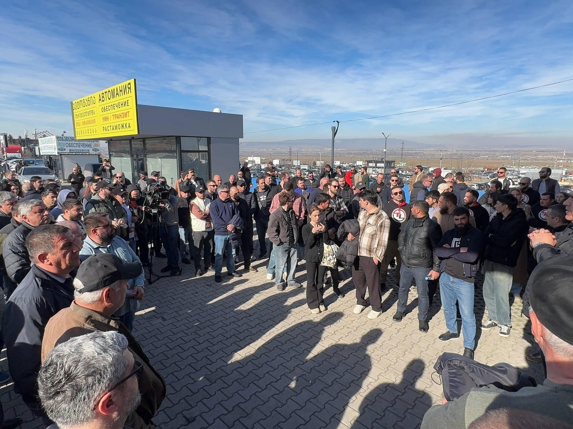 საპროტესტო აქცია შსს-ის მომსახურების სააგენტოს შენობასთან, რუსთავის მახლობლად მდებარე ავტობაზრობაზე გაიმართა.