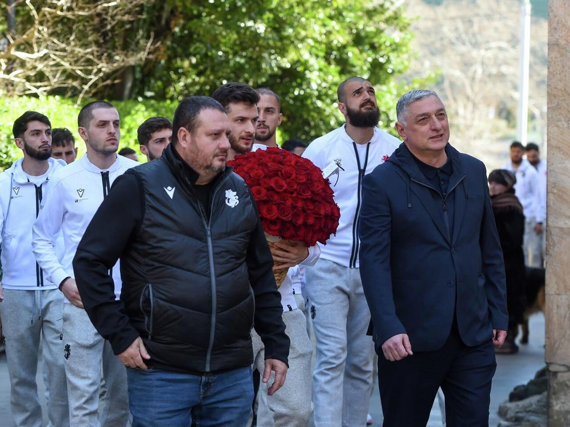 ეროვნული ნაკრები წევრები, საქართველოს ფეხბურთის ფედერაციის წარმომადგენლებთან ერთად, სიონში ილია მეორის სულის მოსახსენებელ პანაშვიდს დაესწრნენ - პატრიარქის საფლავთან გვირგვინი, გუნდის სახელით, ხვიჩა კვარაცხელიამ მიიტანა.