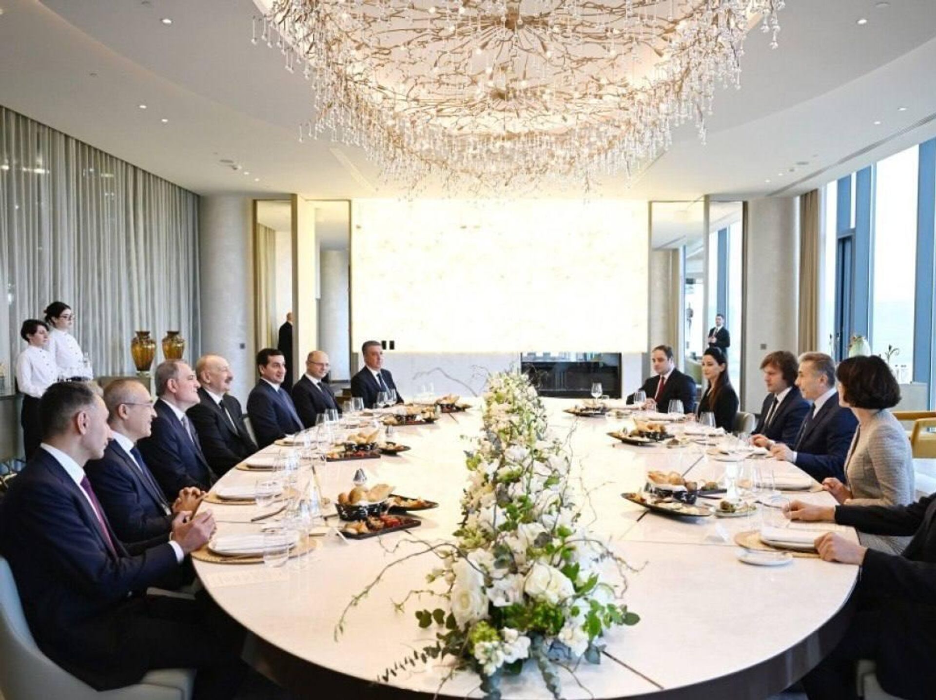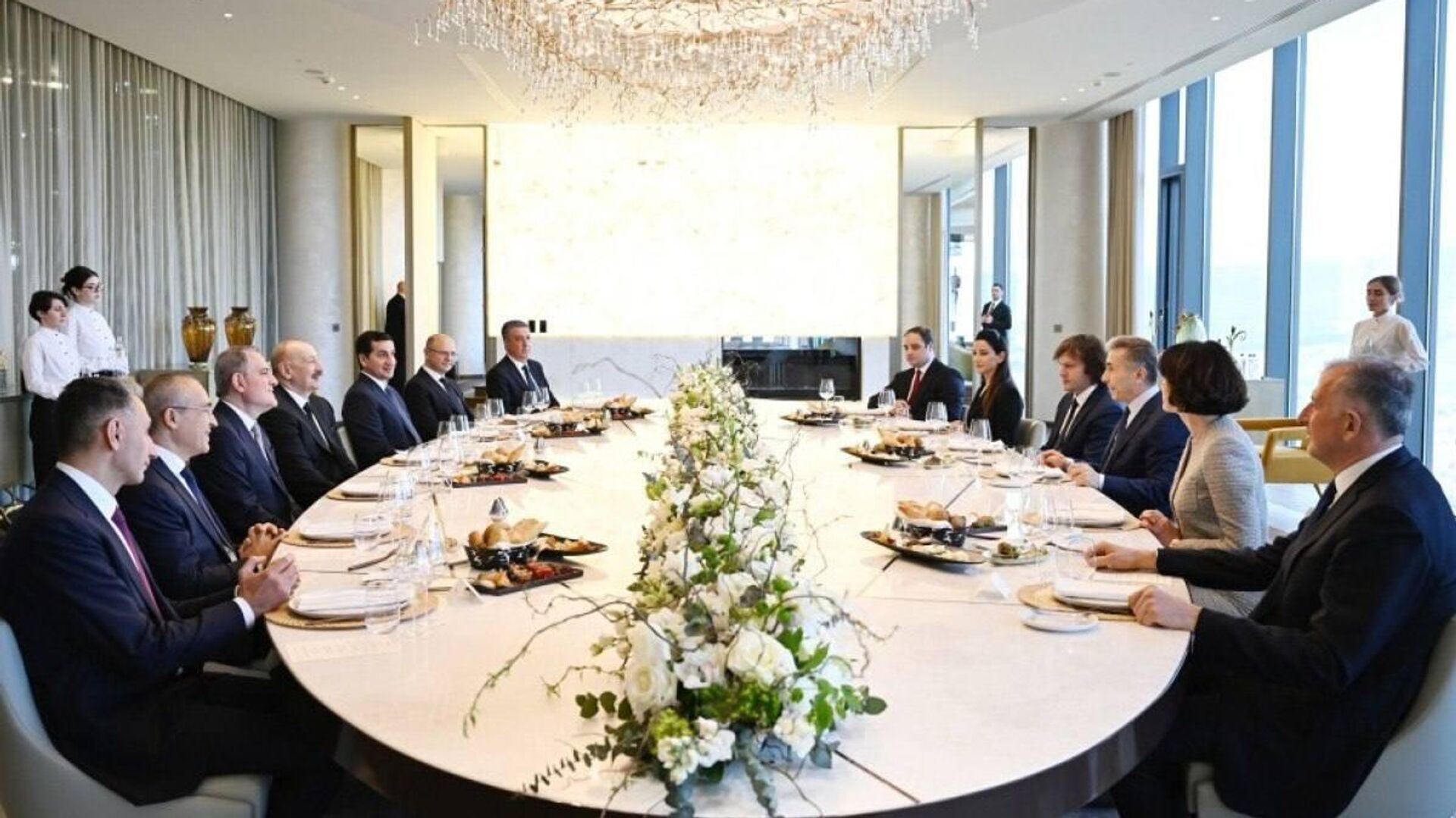 ბიძინა ივანიშვილმა ილჰამ ალიევს და აზერბაიჯანის დელეგაციას ბიზნეს ცენტრში უმასპინძლა