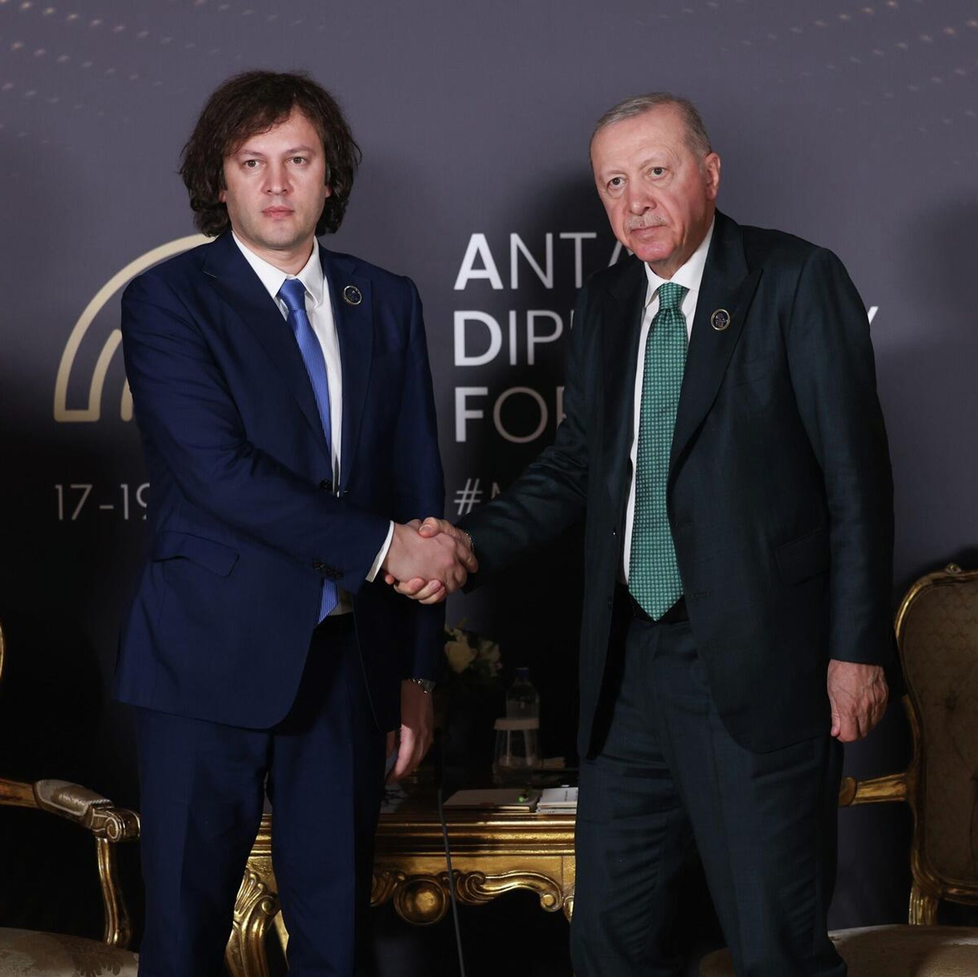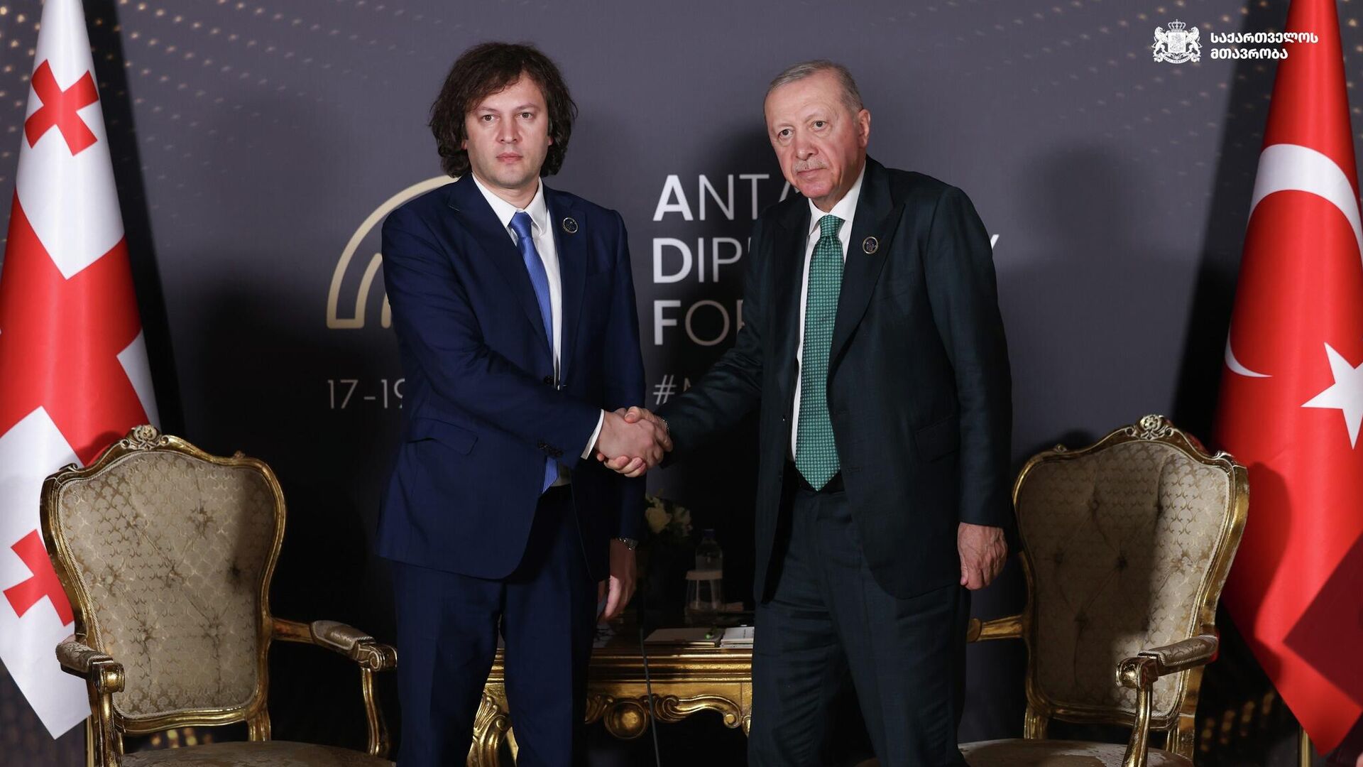 თბილისი, 18 აპრილი — Sputnik. საქართველო აფასებს თურქეთთან პარტნიორობას და სურს მასთან ურთიერთობების კიდევ უფრო გაღრმავება, განაცხადა საქართველოს პრემიერ-მინისტრმა ირაკლი კობახიძემ.საქართველოს მთავრობის მეთაურმა თურქეთში ვიზიტი პრეზიდენტ რეჯეფ თაიიფ ერდოღანთან შეხვედრით დაასრულა.ირაკლი კობახიძემ თურქეთში, ანტალიის მეხუთე დიპლომატიურ ფორუმში მიიღო მონაწილეობა, სადაც რეგიონში არსებულ გამოწვევებზე, საქართველოს როლსა და მის მომავალზე ისაუბრა.შეხვედრისას ყურადღება გამახვილდა სავაჭრო-ეკონომიკური თანამშრომლობის პოზიტიურ დინამიკაზე და ერთობლივი რეგიონული პროექტების როლზე.მათ შორის აღინიშნა ბაქო-თბილისი-ყარსის რკინიგზის, ასევე ბაქო-თბილისი-ჯეიჰანის ნავთობსადენისა და ბაქო-თბილისი-ერზერუმის გაზსადენისა და სამხრეთის გაზის დერეფნის მნიშვნელობა როგორც რეგიონისა და ევროპის დაკავშირების, ისე ევროპის ენერგოუსაფრთხოების განმტკიცების მიმართულებით.მხარეებმა ისაუბრეს შუა დერეფნის პოტენციალზე და მისი განვითარების მიმართულებით შემდგომ თანამშრომლობაზე.ფორუმის ფარგლებში, პრემიერ-მინისტრმა ასევე გამართა რამდენიმე ორმხრივი შეხვედრა.